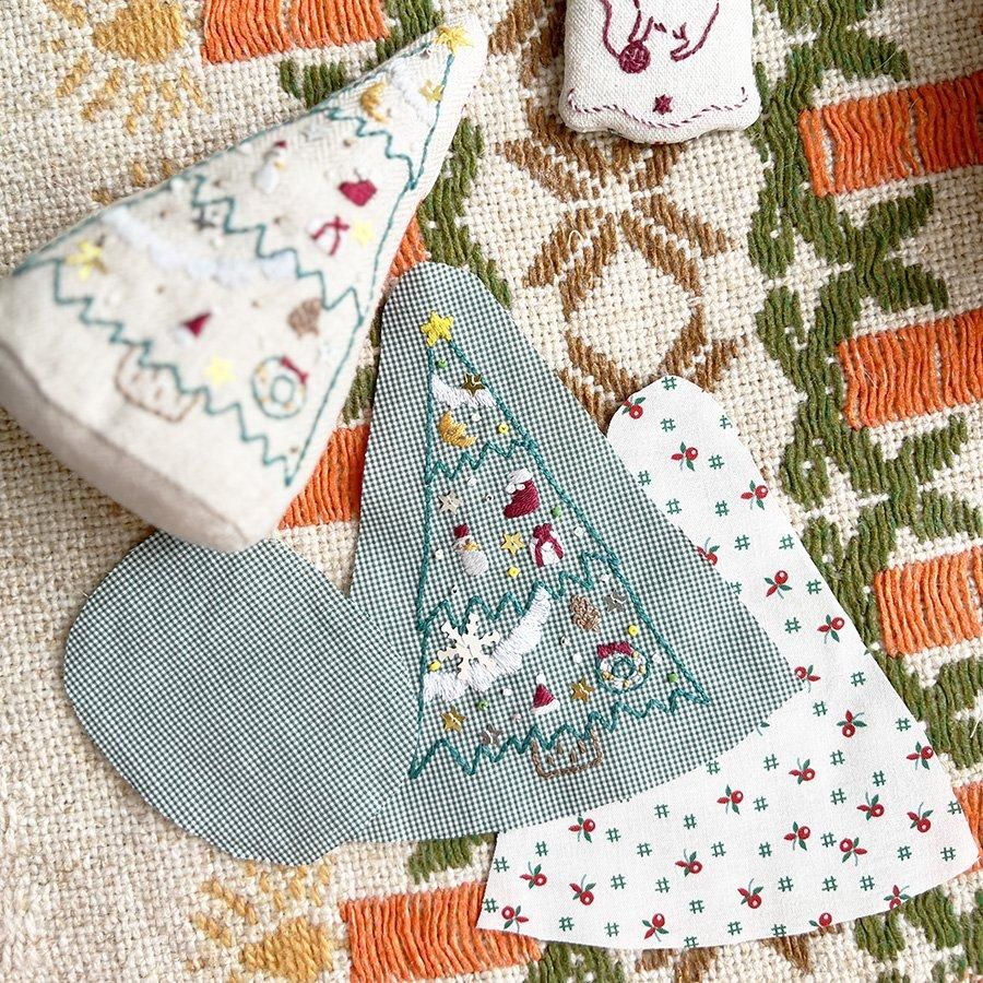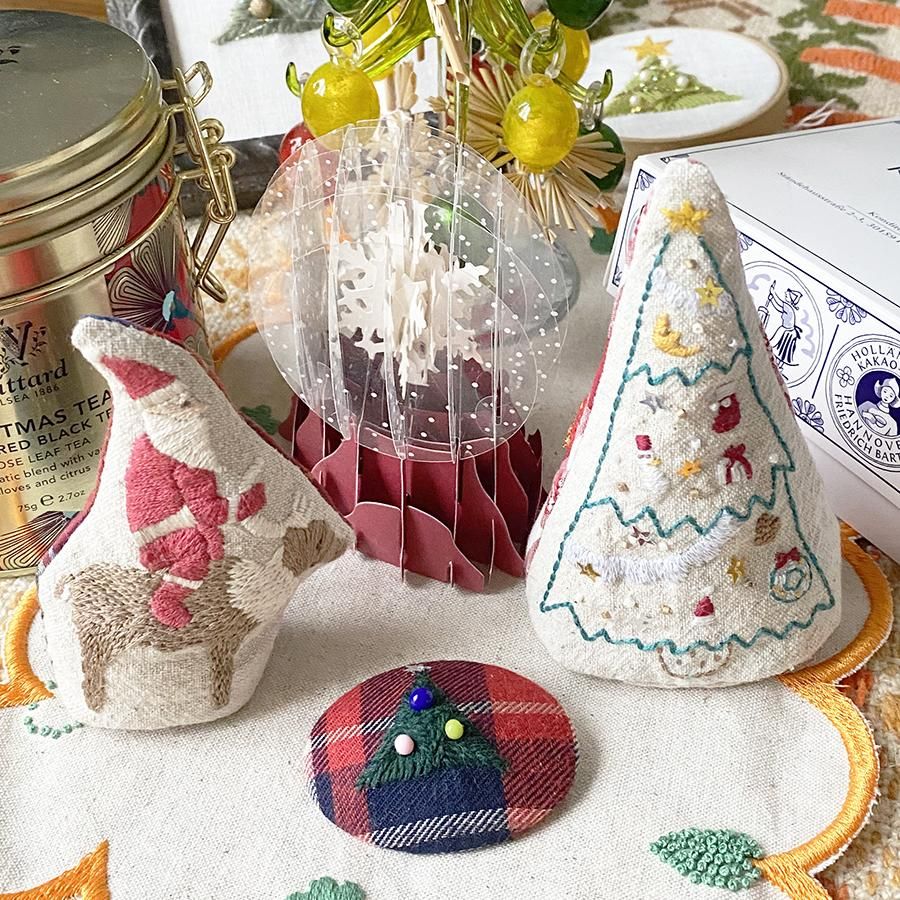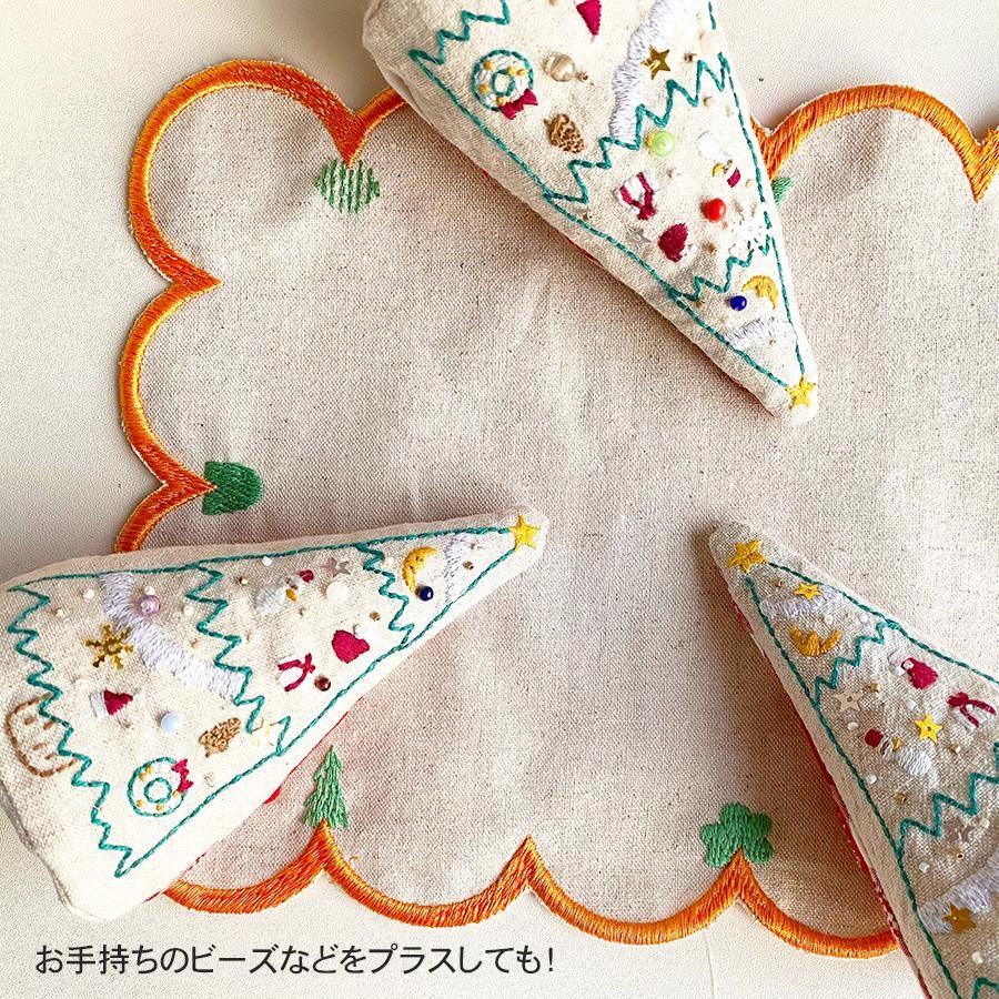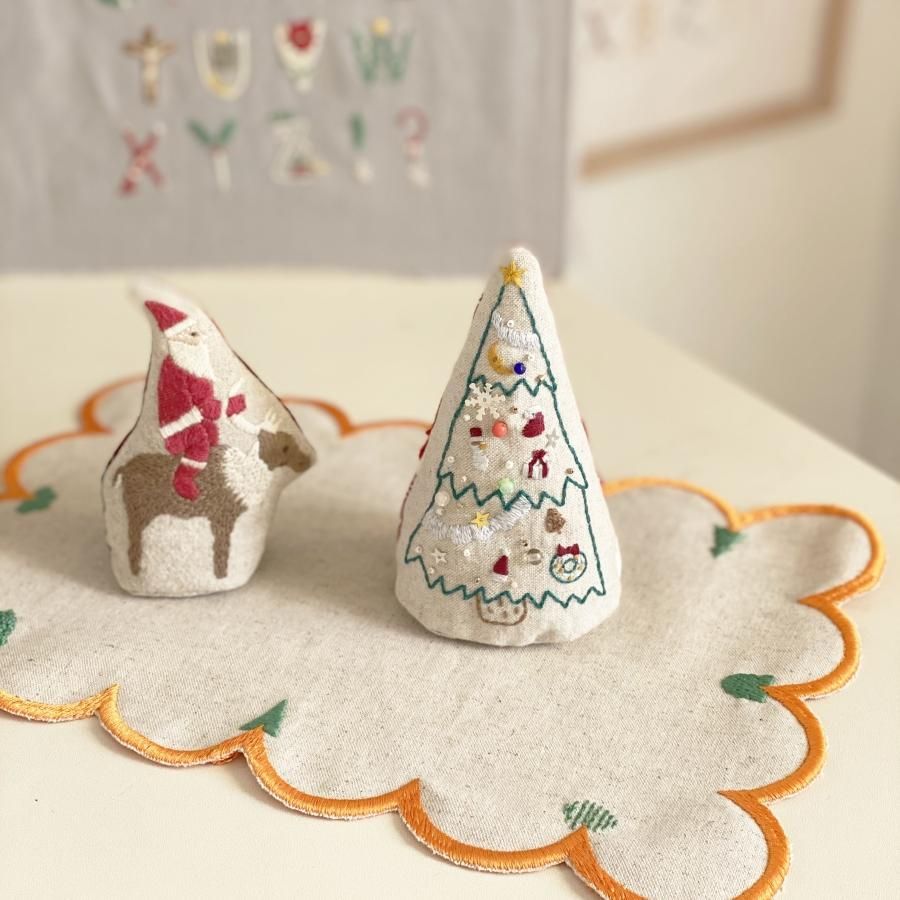 [クリスマスツリーの刺繍ぐるみが作れる刺繍キットです。]